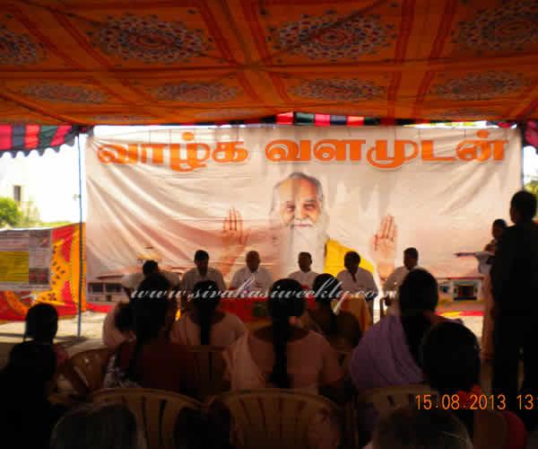 23-08-2013 23rd August 2013 Sapling planting ceremony In connection with Vedhathri Maharishi-s 103rd birthday, Sivakasi Vedhathri Maharishi Manavalakkalai Mandram Arakattalai organised tree plating ceremony, on 15th August 2013, Thursday, at Arivu Thirukovil campus, Viswanatham Road, Sivakasi. The planting ceremony began with formal prayer song and meditation. Mr.M.Raja Sudalaimuthu, President, Ulaga Samuthaya Seva Sangam, Virudhunagar Zone and Mr.A.Nagarajan, SKY, Thirunelveli were present on the function and delivered speech on Vedhathri Maharishi. Around 165 people participated in the function. 33 tree saplings were planted on the occasion. Lunch was arranged for the gathering. |