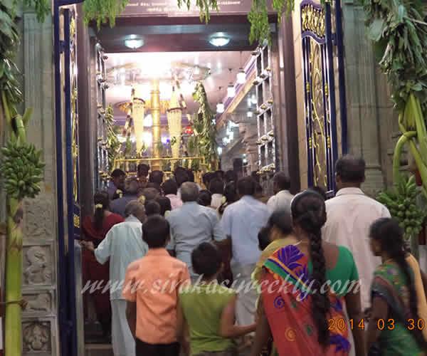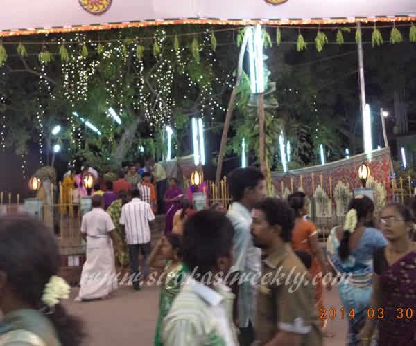 30-03-2014 30th March 2014 2014 Panguni Pongal Festival begins with Kodiyetram The 10 days Panguni Pongal Festival commenced at Sivakasi Sri Arulmighu Mariamman Temple with the flag hoisting ceremony, today. Special pujas were performed on the chief deity Mariamman. The priests also performed special pujas on the flag post, where the holy flag was hoisted. Thousands witnessed Kodiyetram Festival. Light music was arranged. After Kodiyetram event, Fireworks display has been made. Kumududhanam will begins from tomorrow onwards. |