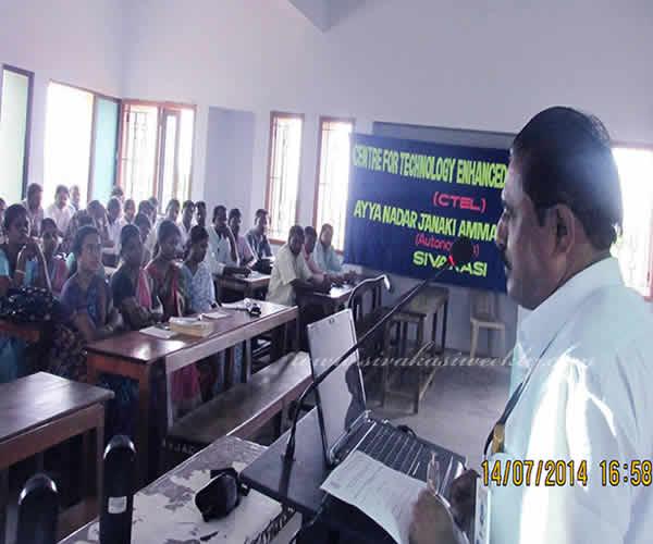 16-07-2014 16th July 2014 Courtesy: Ms.G.Karunya, Assistant Professor of Biotechnology, & Dean, Centre for Technology Enhaced Learning, ANJAC, Sivakasi Staff Development Programme On 14th and 15th July 2014, Centre for Technology Enhance Learning (CTEL) organised a Staff Development Programme to train the faculties on ICT enabled teaching and learning. Dr.V.Pandiyarajan, Principal, inaugurated the training programme. Ms.G.Karunya, Co-ordinator, CTEL welcomed the gathering. Mr.T.Marimuthu, Assistant Professor, Department of Computer Application and Mr.B.Venkatesh, Assistant Professor and Head, Department of Visual Communication trained the faculty members on preparing e-content, online quiz making, learning material (MLM). About 50 faculty members from various disciplines attended the training. The training programme focuses on preparation of e-learning material in simple topics for the first year under graduate students of all disciplines. |