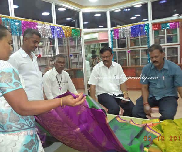 07-10-2014 7th October 2014 Khadi discount sale begins in Sivakasi Dr.V.K.Kathiravan inaugurated khadi sales here on 2nd October 2014, Thursday. Marking the Gandhi Jayanthi celebrations, he paid homage to the leaders and inaugurated the Diwali Discount Sale. Dr.V.K.Kathiravan, received the first sale from Mr.P.Ravichandran, Manager, Khadi Kraft, Sivakasi. Mr.P.Ravichandran said sivakasiweekly.com that, every year Diwali Discount Sale at Sarvodaya Sangh begins from Gandhi Jayanti and a 20 per cent discount would be offered for saree varieties. The discount sale would go up to Diwali, he added. |