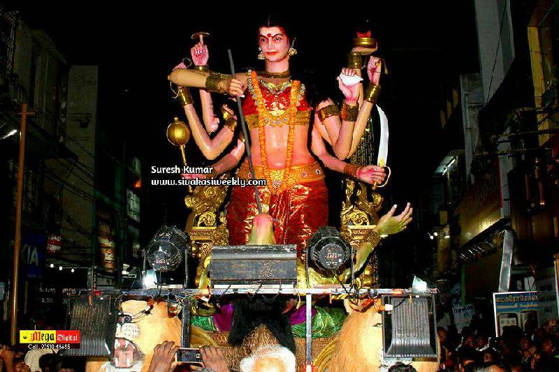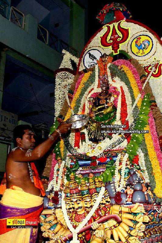 06-05-2017 3aam Thiruvizha held Sivakasi Chithirai Pongal Moonrraam Thiruvizhaa was celebrated on 4th May 2017, Thursday. Third day festival of Chithirai Pongal 2017 was organised by Kaliswari Group of Industries, Sivakasi. At 08:00 p.m. Badrakaliamman Procession in Parvadha Vaaghanam has been taken place from Kadai kovil to Badrakaliamman Kovil. The procession of The Traditional Kerala Pancha Vaathiyam, Singari Melam and Deeba Vilakku procession in front of the Radhams added to the festive spirit. In the procession, Sivakasi kids were wowed by seeing Elephant Dolls, Kaaliamman Goddess killing Sooran and Adhi Yogi Shiva doll. Sivakasians captured the golden moments of Chithirai Pongal Moonam Thiruvizhaa procession in their mobile phones and digital cameras. |