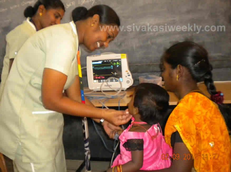 03-09-2012 3rd September 2012 Courtesy: Ln.Paramanandham, President, Lions Club of Sivakasi Heart Camp in Sivakasi Lions Club of Sivakasi in association with Chennai Apollo Children-s Hospital organised a free heart check up camp in AVT Nursery School, Sivakasi, on 2nd September 2012, Sunday. A team of medical experts led by three cardiac specialists, two general doctors, two nurses and one co-ordinator from Apollo Hospital conducted various tests to identify the children with cardiac ailments. The camp was supported by twenty members and ten Leo from Lions Club of Sivakasi. 75 children were screened. Of these, 36 were identified with heart ailments and free cardiac surgery will be performed in Apollo Children-s Hospital, Chennai. |